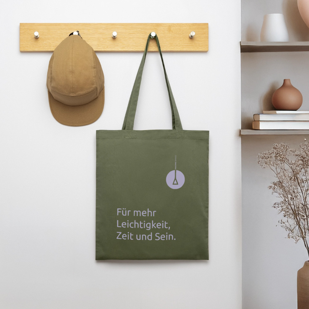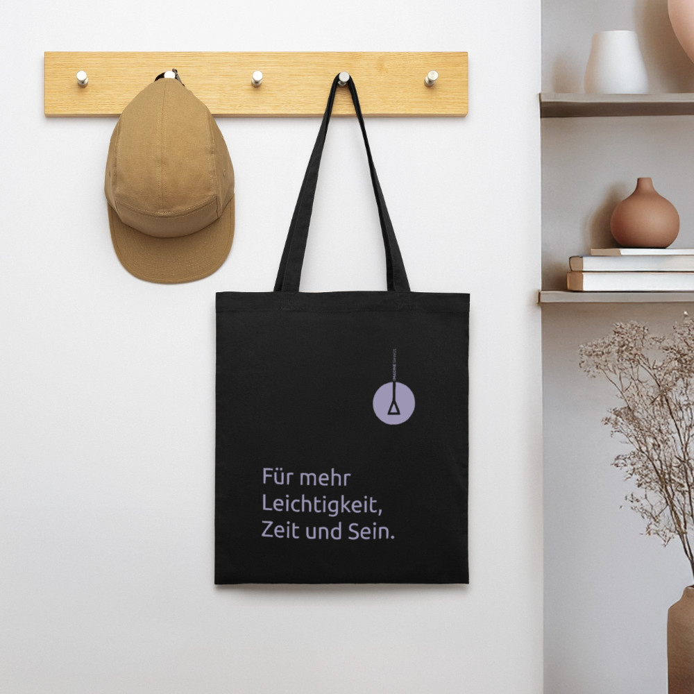Bist du auch für mehr Leichtigkeit, Zeit und Sein im Leben? Dann ist dieser Stoffbeutel genau das Richtige für dich – als alltägliche Erinnerung und um dieses Statement im wahrsten Sinne des Wortes auch nach außen zu tragen.